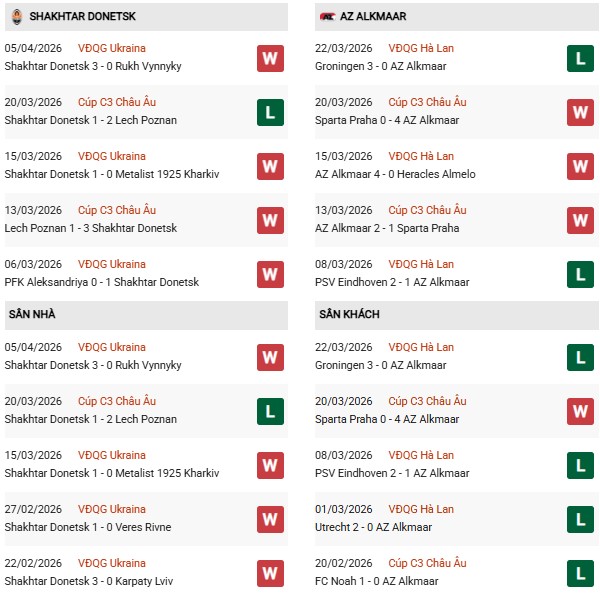 Thống kê phong độ Shakhtar Donetsk vs AZ Alkmaar: