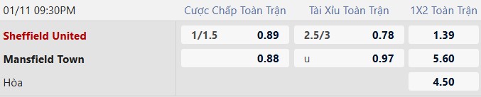 Thông tin tỷ lệ kèo Sheffield United vs Mansfield: