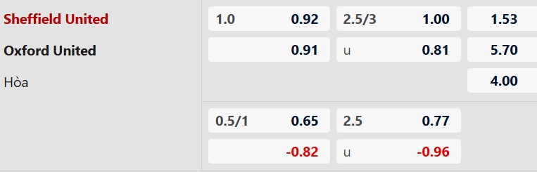 Thông tin tỷ lệ Sheffield United vs Oxford:
