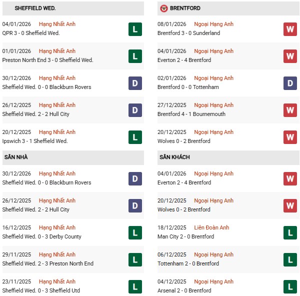- Trên sân nhà, Sheffield Wednesday thắng 6, thua 3 trước Brentford.