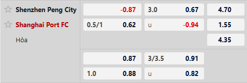 Thông tin tỷ lệ Shenzhen vs Shanghai Port: