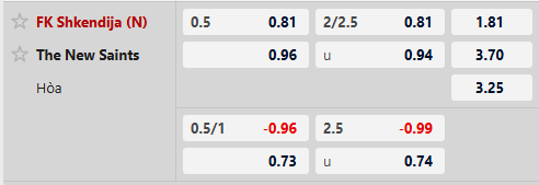 Nhắc lại, trận lượt đi diễn ra tại Xứ Wales cách đây một tuần, Shkendija đã xuất sắc cầm hòa TNS không bàn thắng. Thế nên lượt về rạng sáng mai, chiến thắng sẽ giúp họ hoàn thành chỉ tiêu. Đây là nhiệm vụ khả thi bởi phong độ Shkendija đang rất ổn định khi đang sở hữu chuỗi 3 trận thắng liên tiếp. Đặc biệt, trận tiếp TNS sân nhà gần nhất, Shkendija cũng hủy diệt đối thủ với tỷ só đậm 5-0.