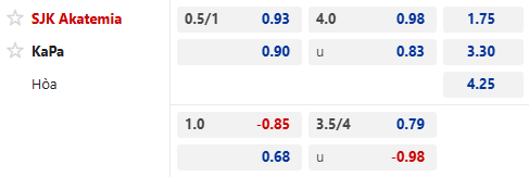 Thông tin tỷ lệ SJK Akatemia vs KaPa: