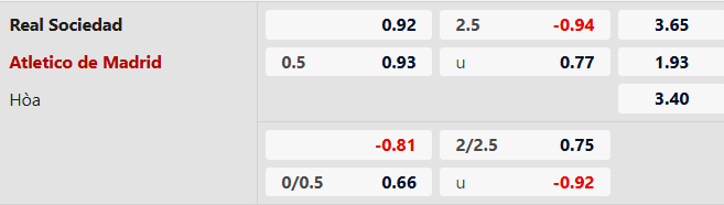 Soi kèo châu Á Sociedad vs Atletico Madrid: