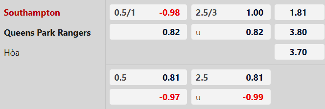 Thông tin tỷ lệ cược Southampton vs QPR: