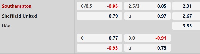 Thông tin tỷ lệ Southampton vs Sheffield Utd: