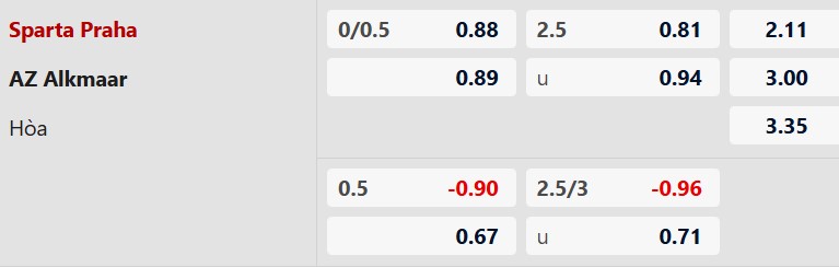 Thông tin tỷ lệ kèo Sparta Praha vs AZ Alkmaar:
