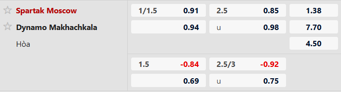 Soi kèo tài xỉu Spartak Moscow vs Dinamo Makhachkala:
