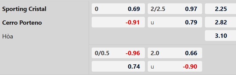 Thông tin tỷ lệ cược Sporting Cristal vs Cerro Porteno:
