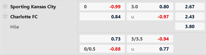 Thông tin tỷ lệ Sporting Kansas vs Charlotte:
