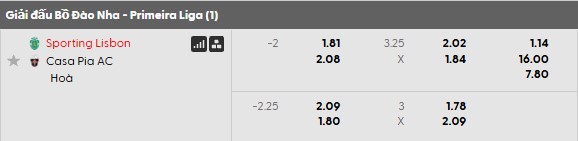 Thông tin tỷ lệ bóng đá Sporting Lisbon vs Casa Pia: