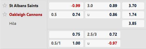 Thông tin tỷ lệ St Albans vs Oakleigh Cannons: