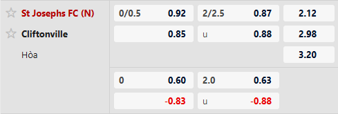 Thông tin tỷ lệ St Joseph's vs Cliftonville: