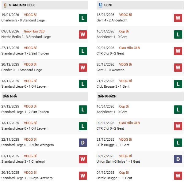 - Trên sân nhà, Standard Liege thắng 3, thua 6 trước Gent.