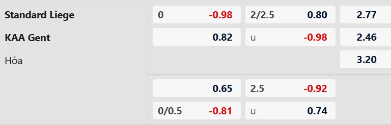 Soi kèo châu Á Standard Liege vs Gent: