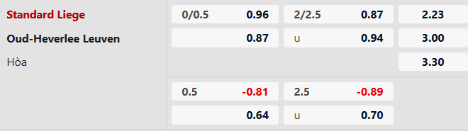 Thông tin tỷ lệ kèo Standard Liege vs Leuven: