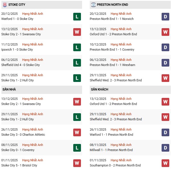 - Trên sân nhà, Stoke City thắng 1, thua 5 trước Preston.