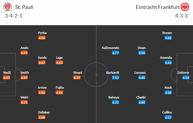 Đội hình dự kiến St.Pauli vs Frankfurt: