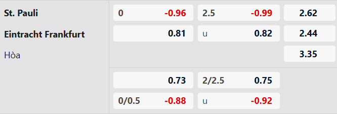 Thông tin tỷ lệ cược St.Pauli vs Frankfurt: