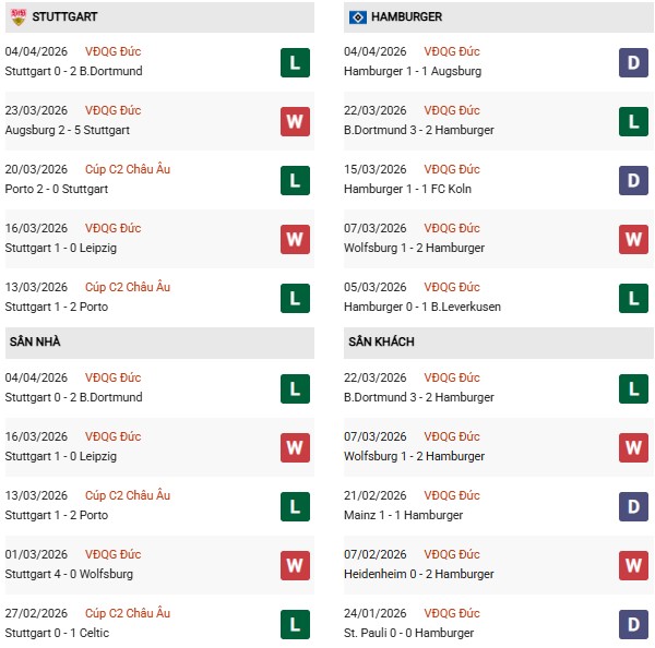 - Stuttgart thắng 5, hòa 2, thua 3 trong 10 trận gặp Hamburg gần đây.
