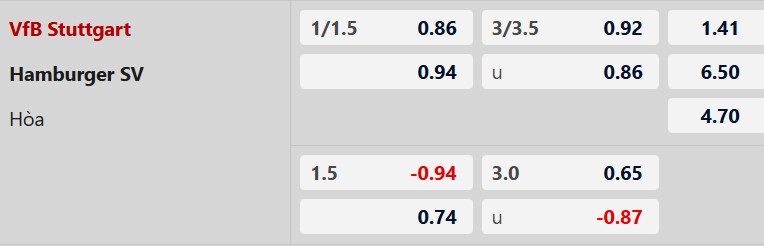 Thông tin tỷ lệ kèo Stuttgart vs Hamburg: