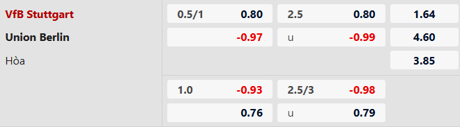 Soi kèo châu Á Stuttgart vs Union Berlin: