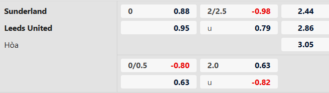 Soi kèo tài xỉu Sunderland vs Leeds: