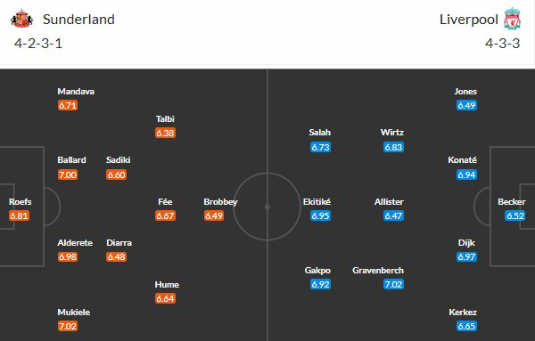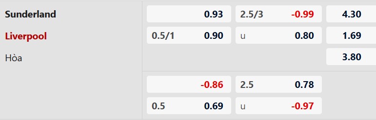 Thông tin tỷ lệ kèo bóng đá Sunderland vs Liverpool: