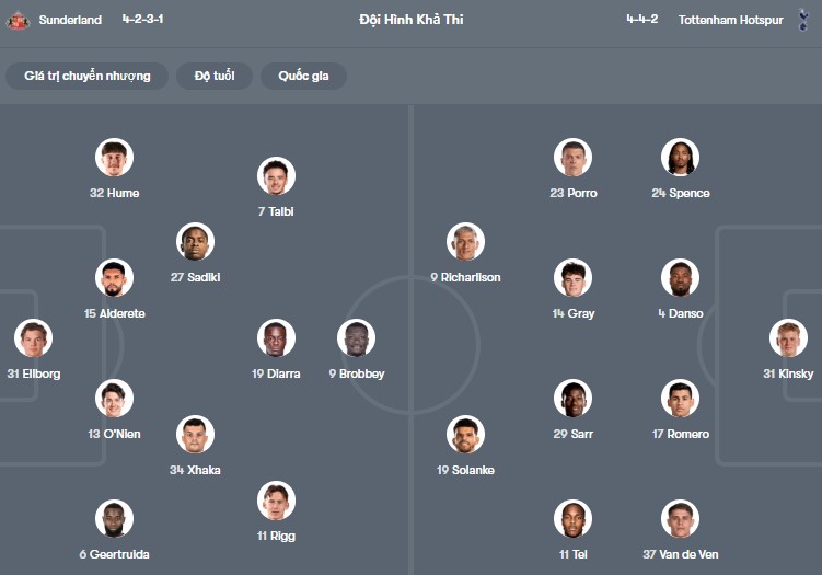 Tottenham: Bissouma, Davies, Kulusevski, Maddison, Bentancur, Kudus, Odobert chấn thương.