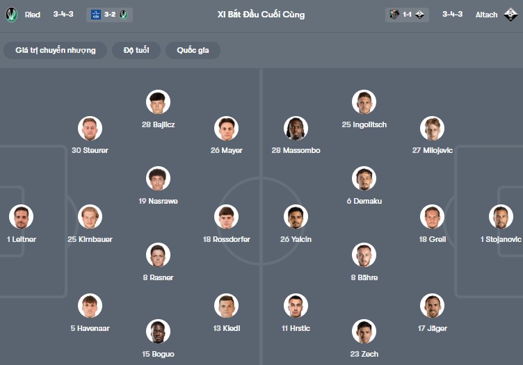 Đội hình dự kiến SV Ried vs Altach: