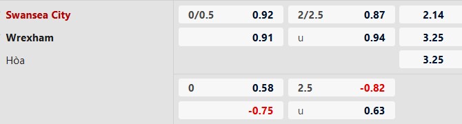 Thông tin tỷ lệ bóng đá Swansea vs Wrexham: