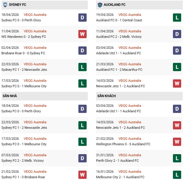 Thống kê cho thấy Auckland bất bại trong 4 chuyến làm khách gần nhất, trong đó có 2 chiến thắng vang dội (5-0 trước Wellington Phoenix và 2-1 trước Newcastle Jets). Sự lỳ lợm khi đi du đấu sẽ là chìa khóa để đội bóng mới nổi này ca khúc khải hoàn ngay tại Sydney.