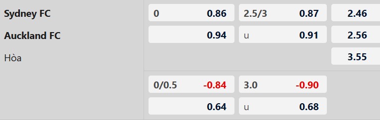 Thông tin tỷ lệ kèo Sydney FC vs Auckland: