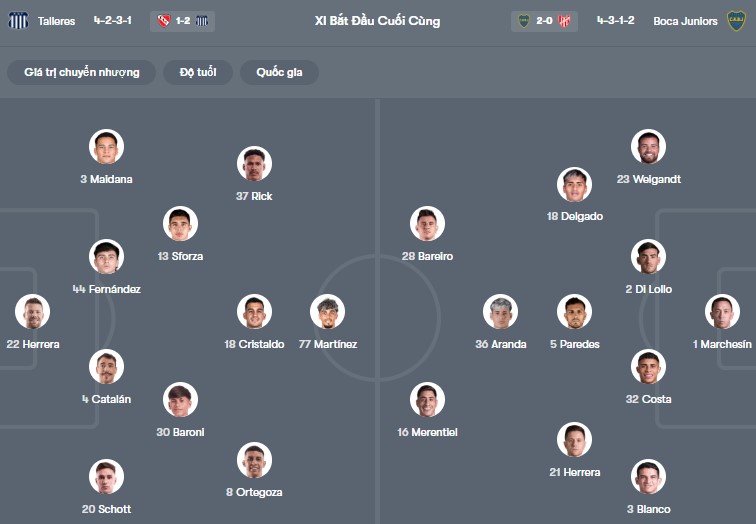 Đội hình dự kiến Talleres vs Boca Juniors: