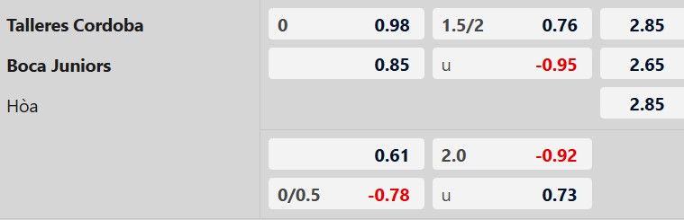 Thông tin tỷ lệ kèo Talleres vs Boca Juniors:
