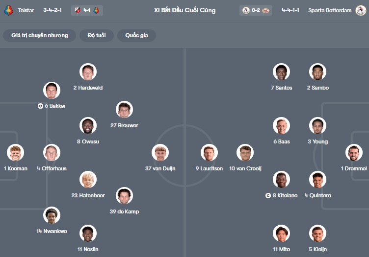 Đội hình dự kiến Telstar vs Sparta Rotterdam: