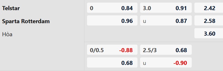 Soi kèo châu Á Telstar vs Sparta Rotterdam: