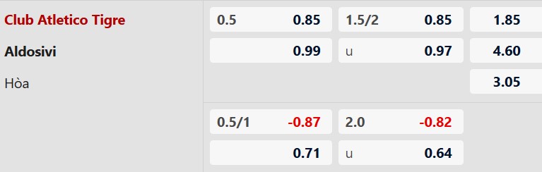 Thông tin tỷ lệ kèo Tigre vs Aldosivi: