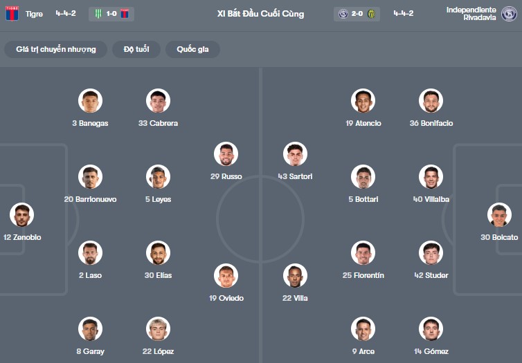 Đội hình dự kiến Tigre vs Independiente Rivadavia: