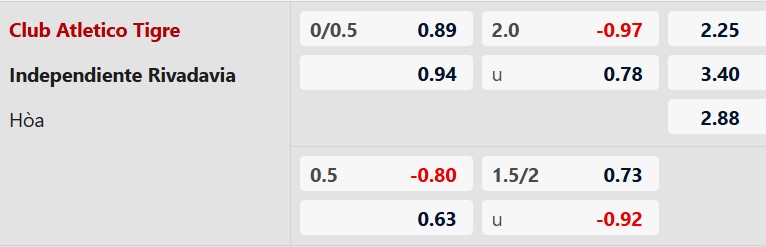 Thông tin tỷ lệ Tigre vs Independiente Rivadavia:
