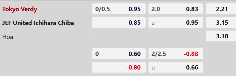 Thông tin tỷ lệ kèo Tokyo Verdy vs JEF United: