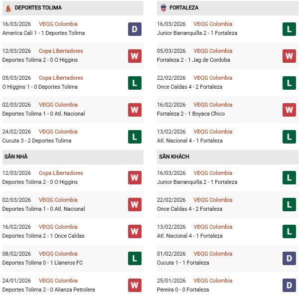 - Tolima thắng 3, hòa 5, thua 2 trong 10 trận gặp Fortaleza CEIF gần đây.