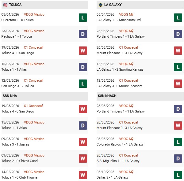NHẬN ĐỊNH TOLUCA VS LA GALAXY, 10H00 NGÀY 9/4