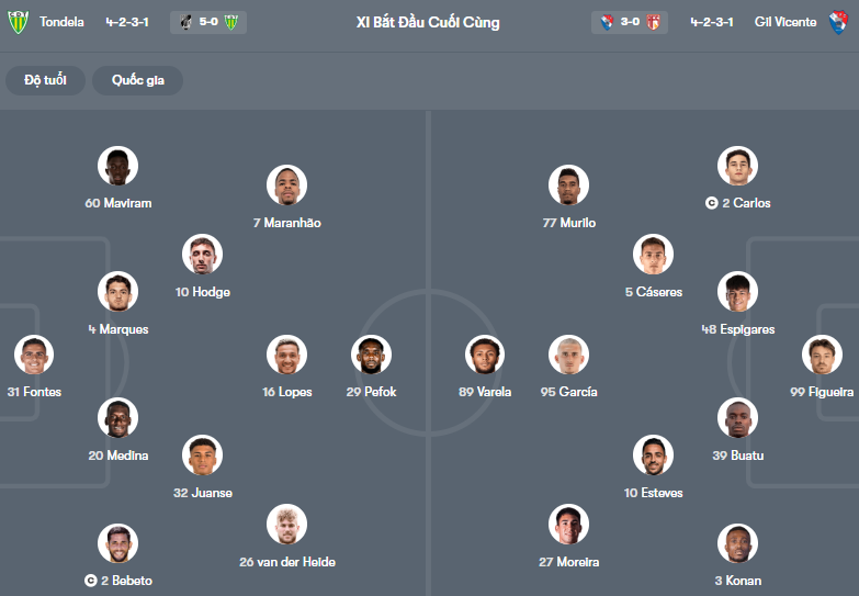 Đội hình dự kiến Tondela vs Gil Vicente: