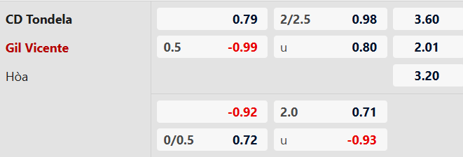 Thông tin kèo bóng đá Tondela vs Gil Vicente: