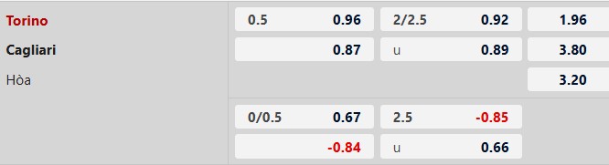 Thông tin tỷ lệ bóng đá Torino vs Cagliari: