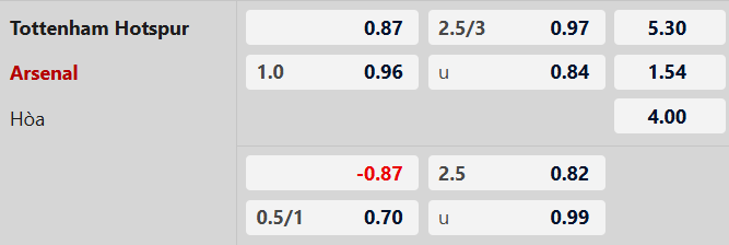 Thông tin tỷ lệ kèo bóng đá Tottenham vs Arsenal: