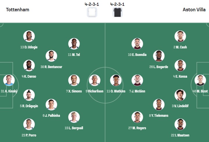 Đội hình dự kiến Tottenham vs Aston Villa: