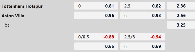 Thông tin tỷ lệ kèo bóng đá Tottenham vs Aston Villa: