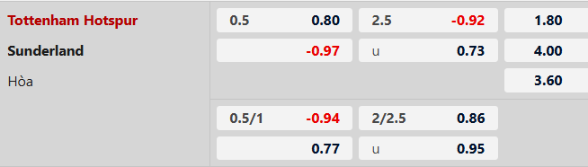 Soi kèo châu Á Tottenham vs Sunderland: